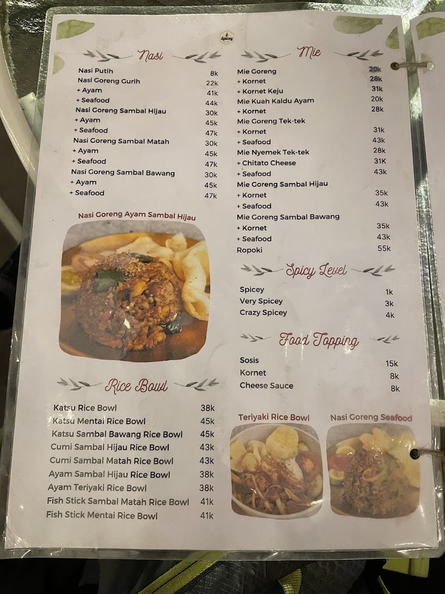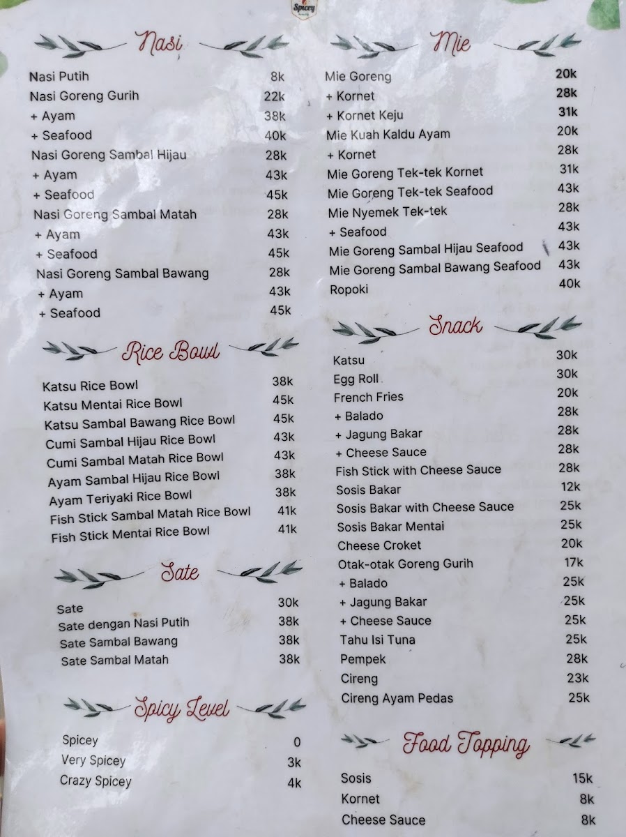 Welcome to SPICEY GARDEN CAFE & RESTO, a vibrant culinary haven located in the heart of Pamulang, Banten. This restaurant harmoniously blends local flavors with international influences, offering a diverse menu to tantalize your taste buds. Don't miss their standout dishes like the BBQ Sate Jagung and a variety of fulfilling Nasi creations, from Nasi Ayam Sambal Hijau to the delightful Nasi Chicken Teriyaki. For a sweet touch, indulge in their unique Roti Bakar Ice Cream options.
